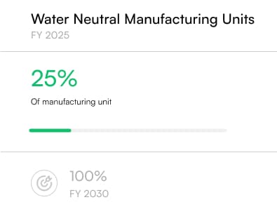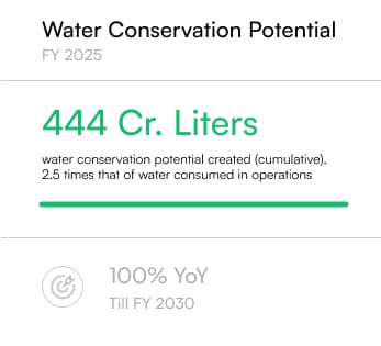 We are prioritizing water neutrality in our operations and water stewardship in our value chain. All our manufacturing facilities practice Zero Liquid Discharge (ZLD). We are monitoring water stress in the areas adjacent to the manufacturing facilities and investing in water efficient systems in operations. We practice rainwater harvesting and rainwater usage for process cooling purposes and deploying zero liquid discharge (ZLD) principles to reduce freshwater consumption in our manufacturing units. We are taking actions to offset our water consumption by creating water storage capacity for communities. Our ‘Jalashay’ program facilitates dam desiltation, rejuvenation of water bodies, and construction of farm ponds.